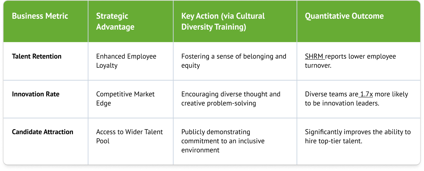 This data helps uncover "affinity bias," where people unconsciously favor those most like themselves. Multicultural awareness training ensures that opportunities are distributed fairly and based on merit.